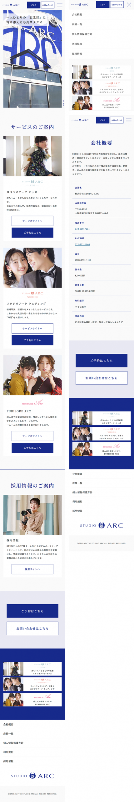 スタジオアークのコーポレートサイトのリニューアルを皮切りに、子供写真撮影、ウェディング写真撮影、振袖レンタルの各サイトを段階的に刷新しました。
